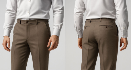 Quando aplicado na posição diagonal (ao lado), deixa a calça com jeitão mais casual. Já, quando está "escondido" na lateral, a calça fica mais certinha.